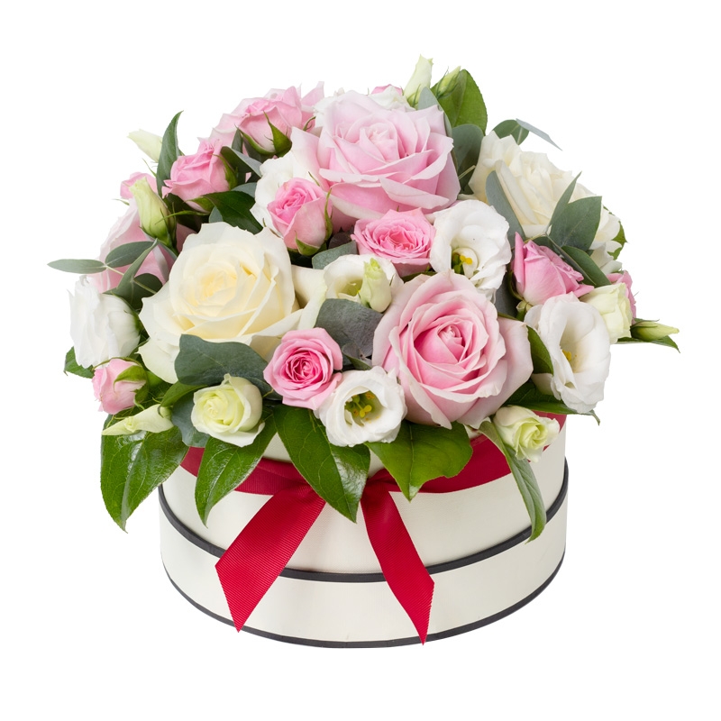 A stunning hatbox design brimming with soft pink and cream blooms.