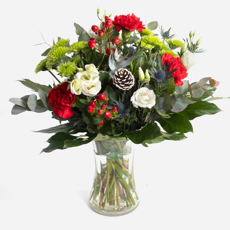 flowers will be chosen by our florists on the day in shades or red, whites and greens, pic for illustrative purposes