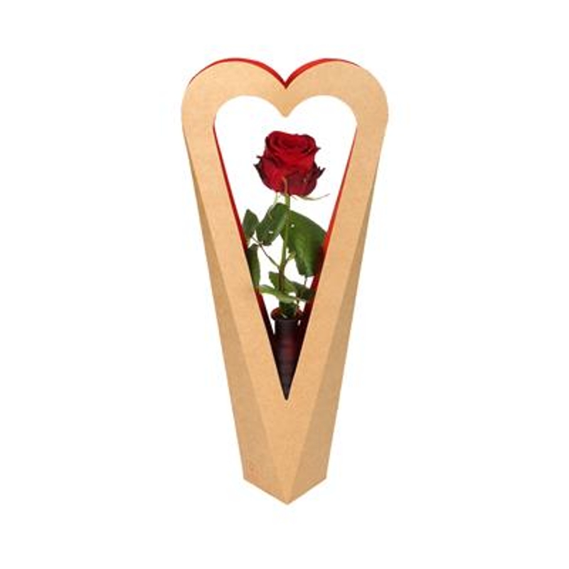 A beautiful large headed rose and foliage presented in a glass bud vase and delivered in this cute Kraft bag