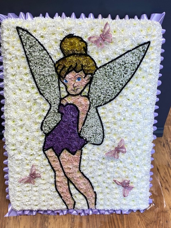 3ft x 2FT tribute of Tinkerbell with butterflies.