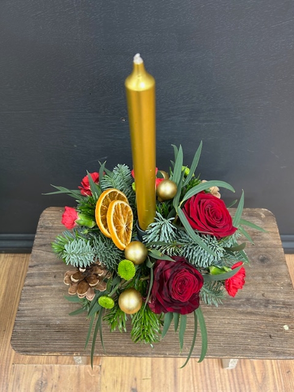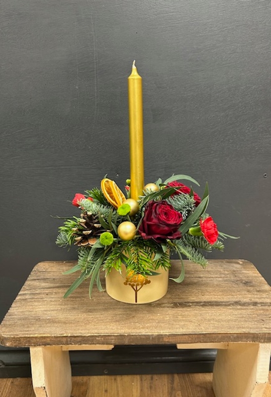 This ceramic pot comes filled with festive foliages, fresh blooms and christmas cheer!