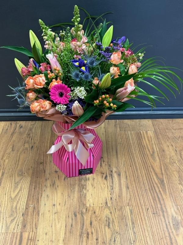 we will then gift wrap them and place in one of our large luxury box vases ready to enjoy