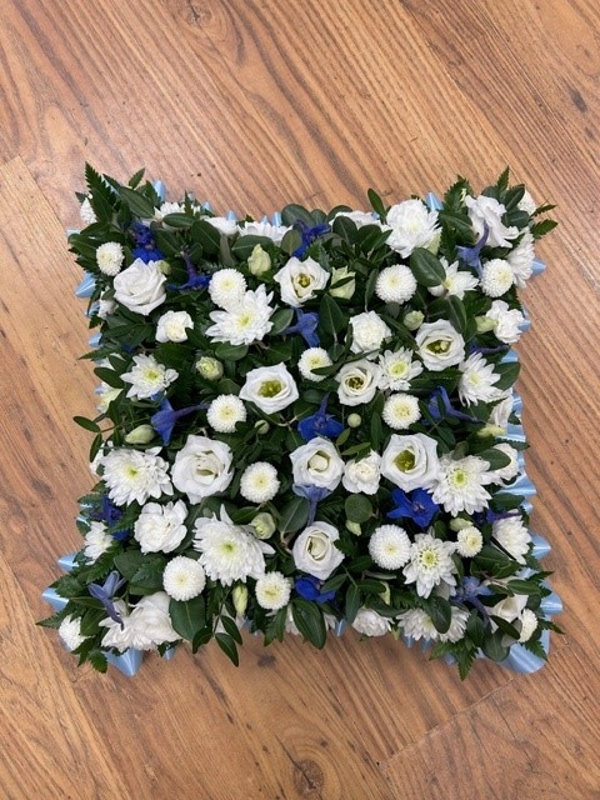 Blue and white cushion